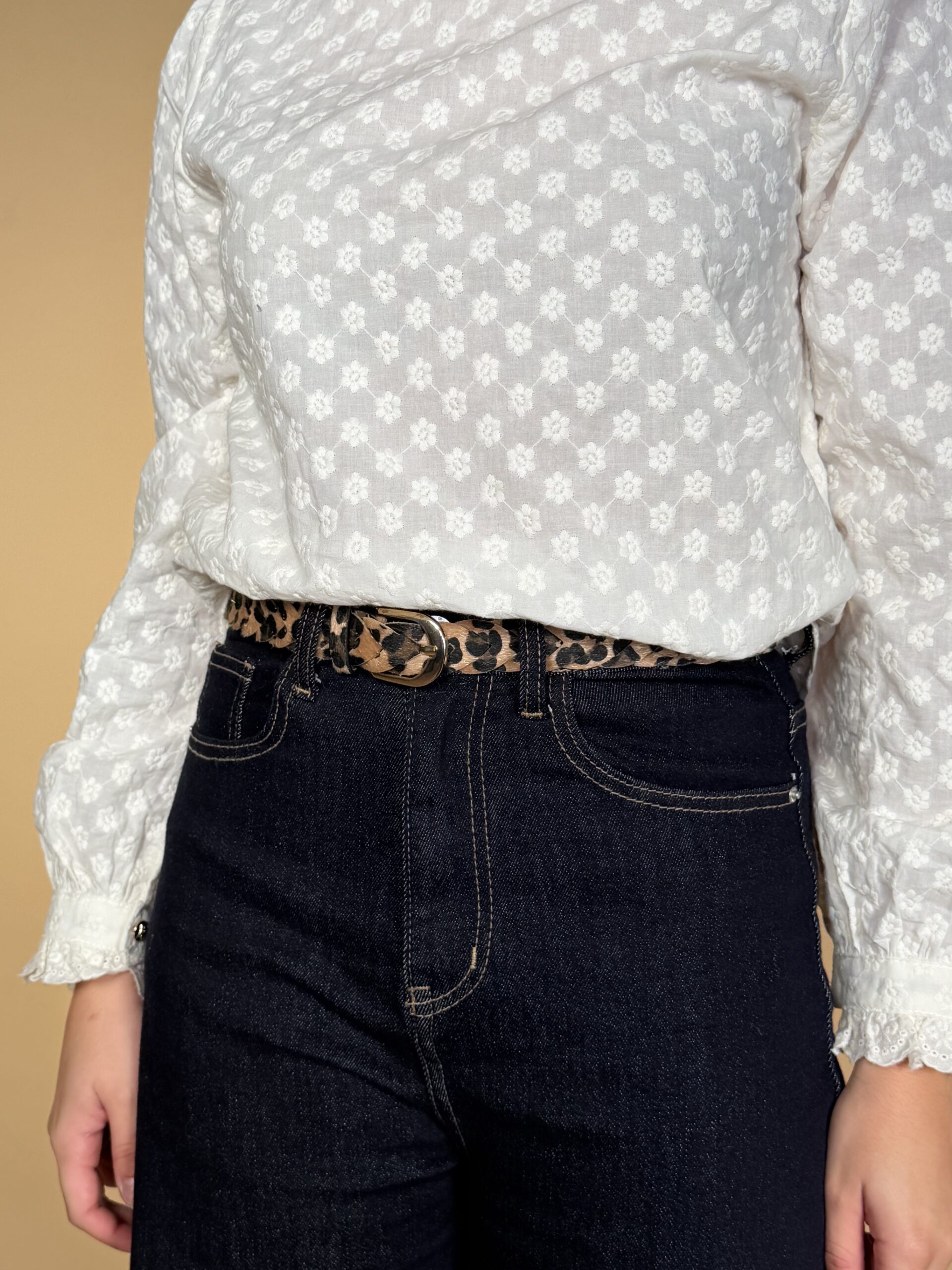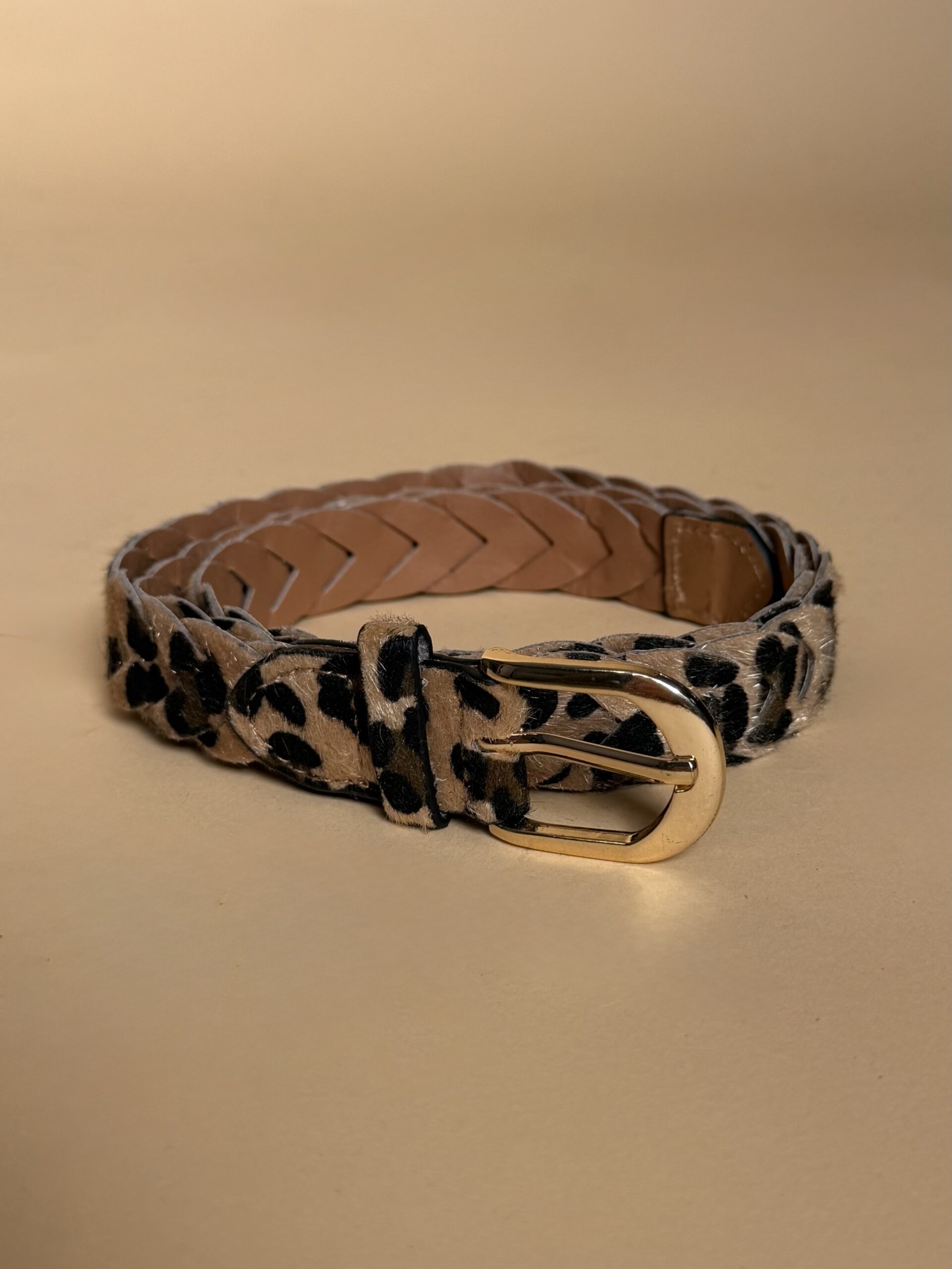 cinturón en tejido de ante con diseño leopardo
