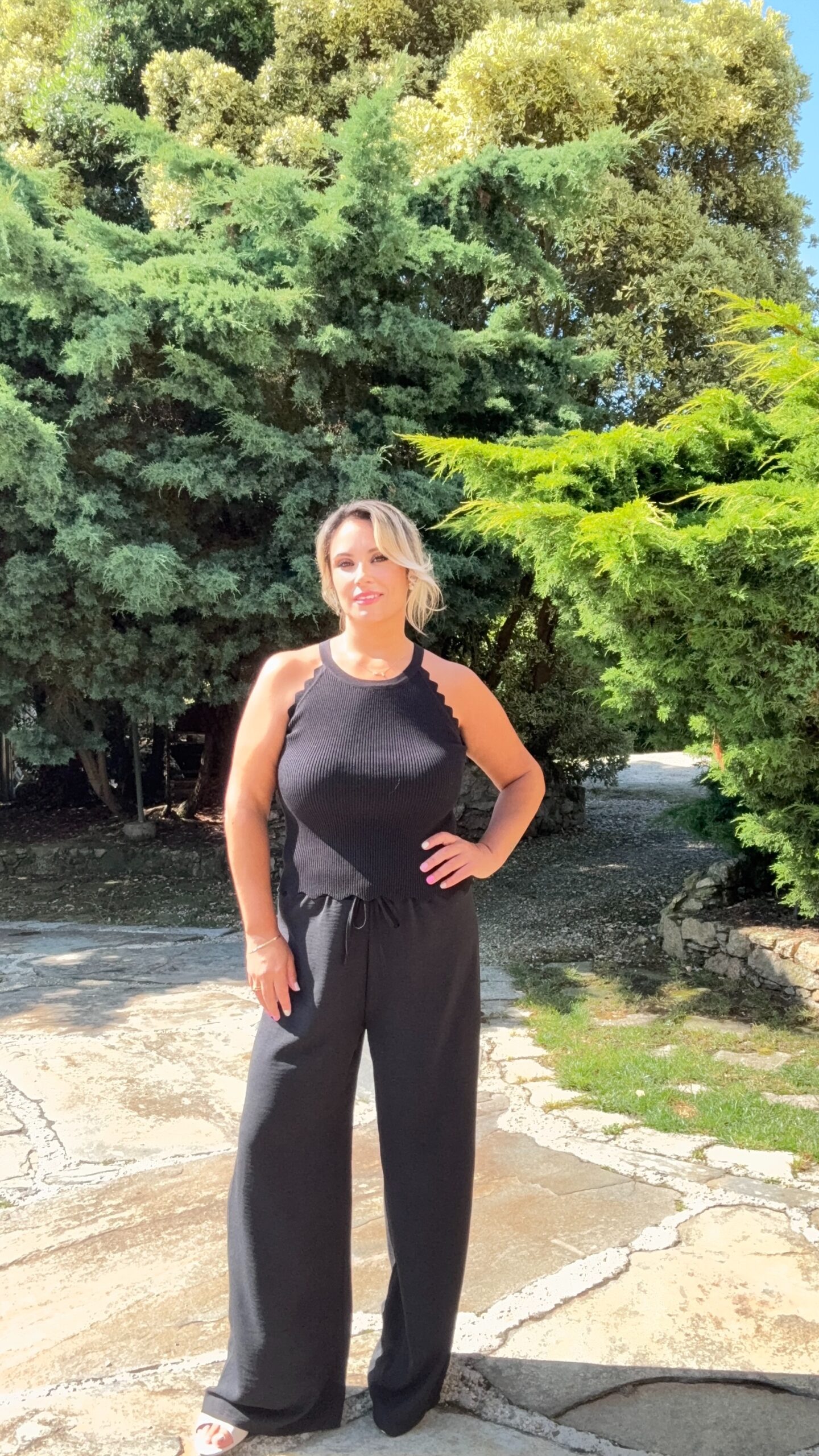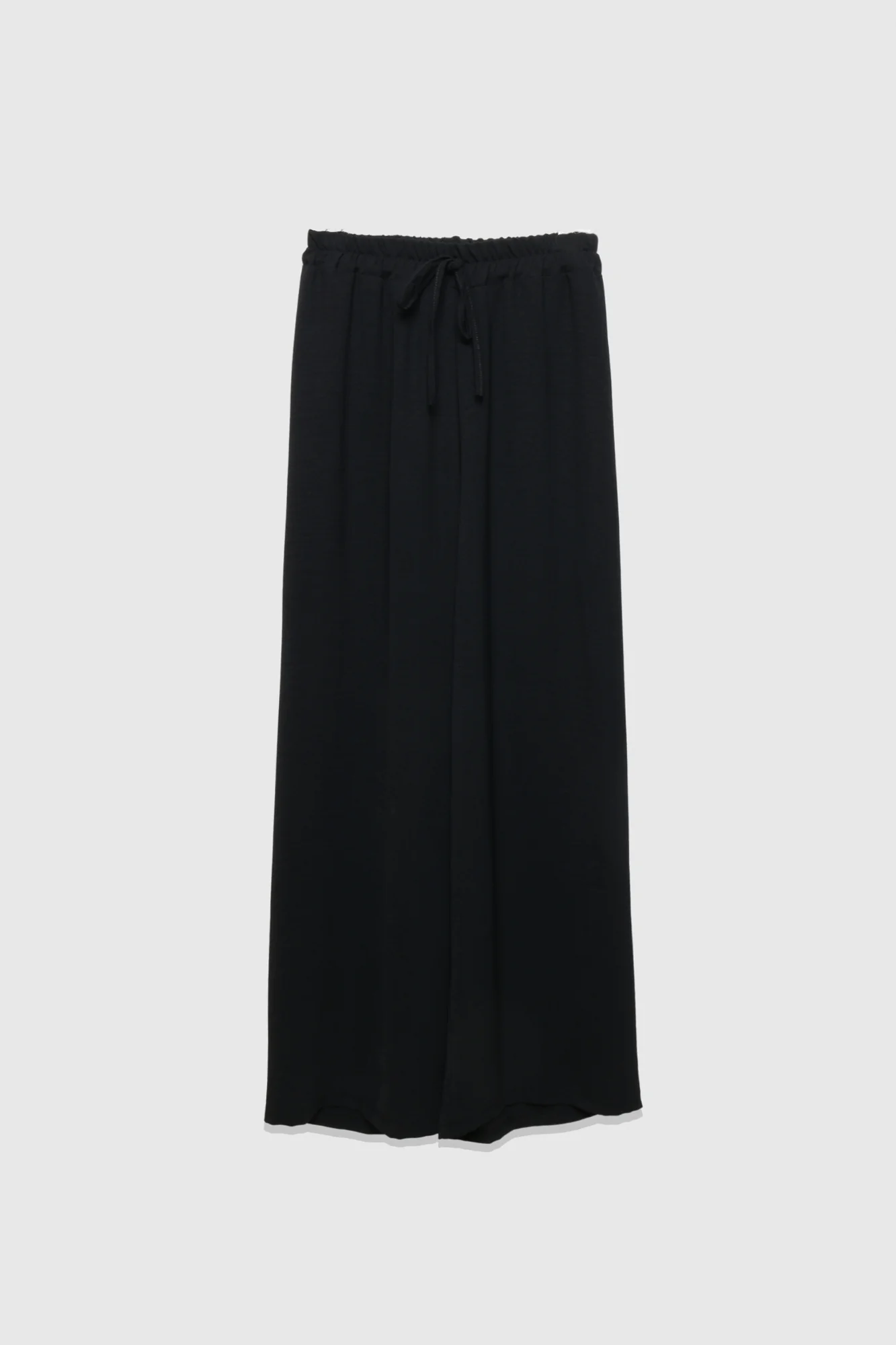 La combinación del tejido fluido, el talle alto y la cintura elástica asegura un look sofisticado sin sacrificar la comodidad.