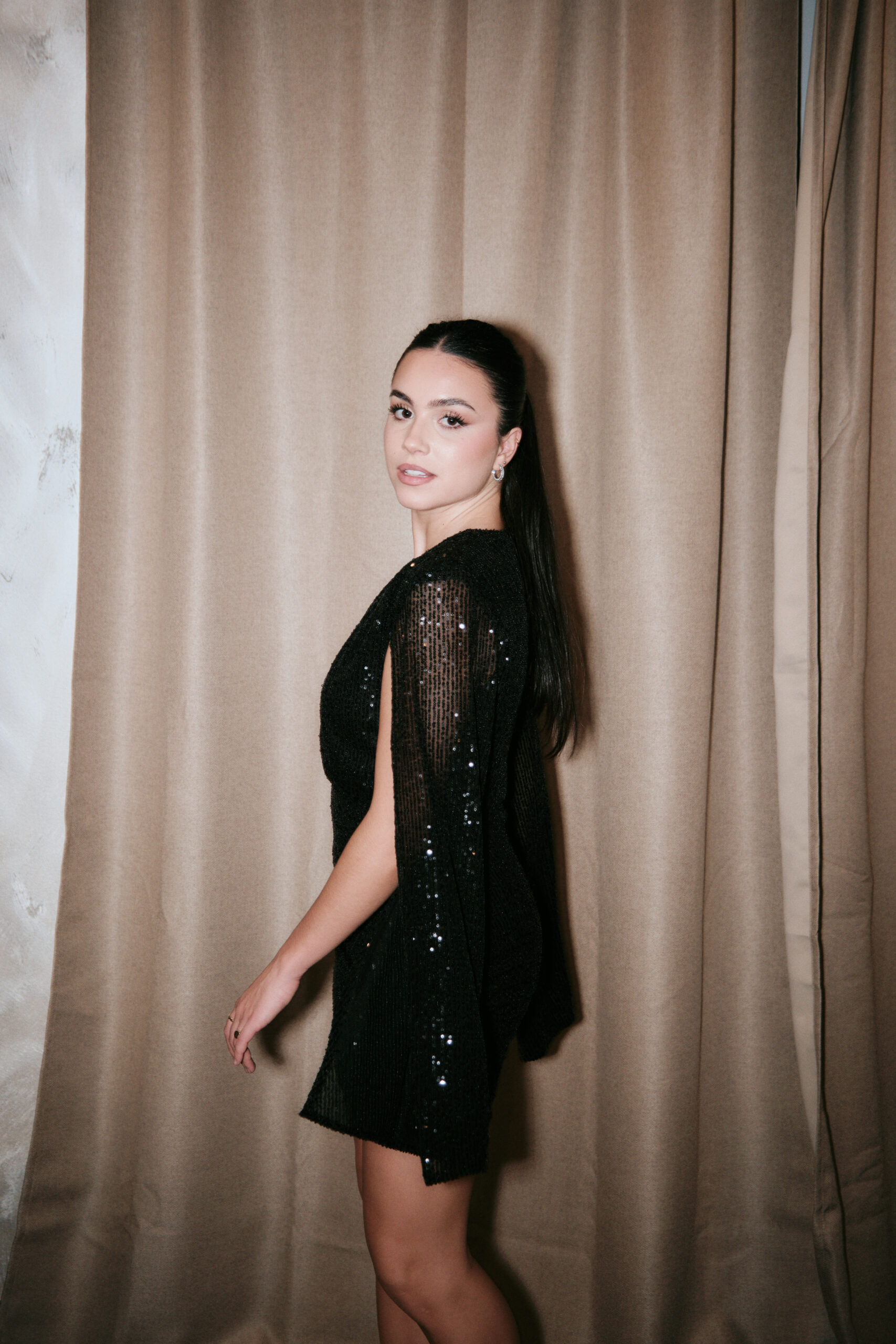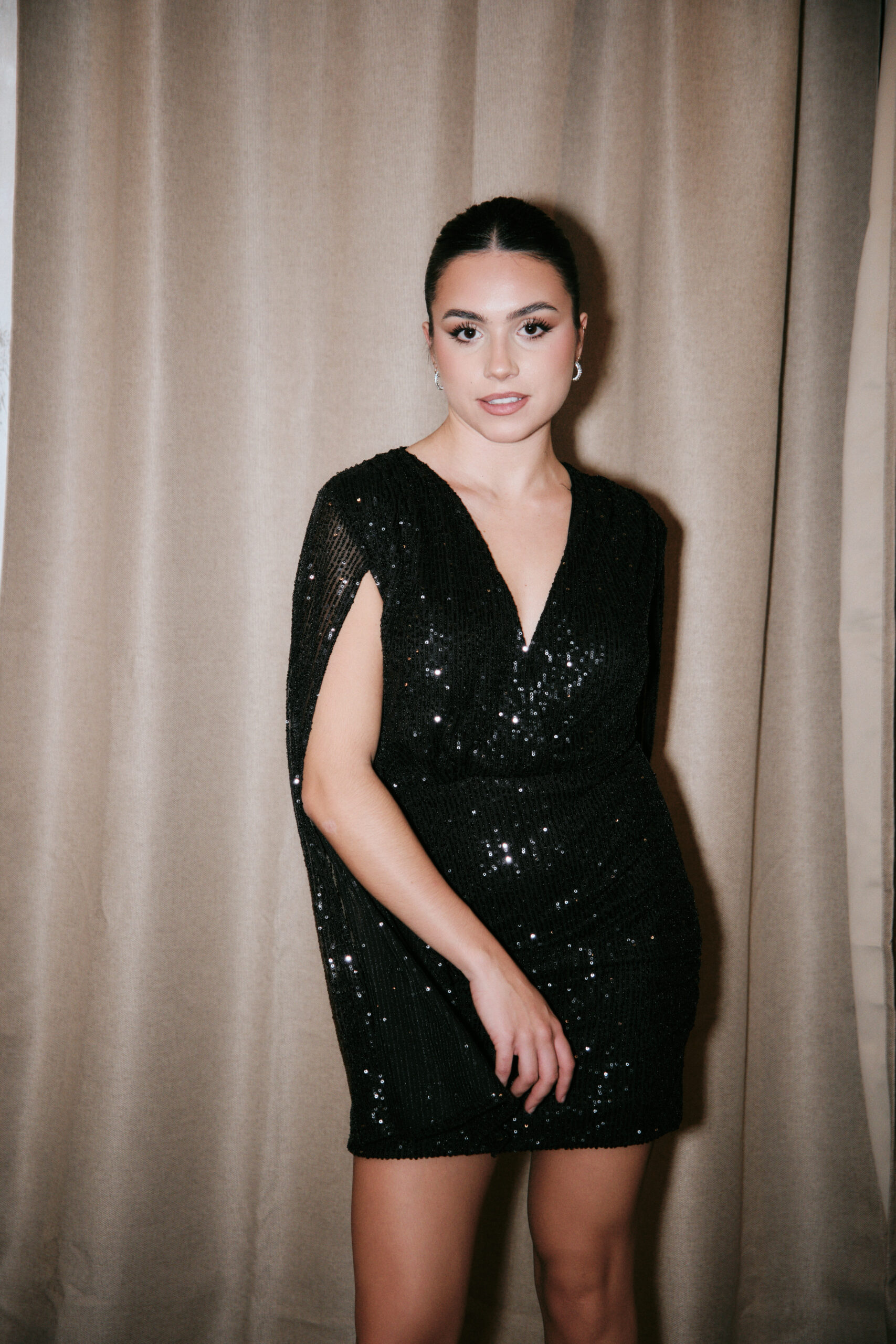 Vestido en color negro con brillo.