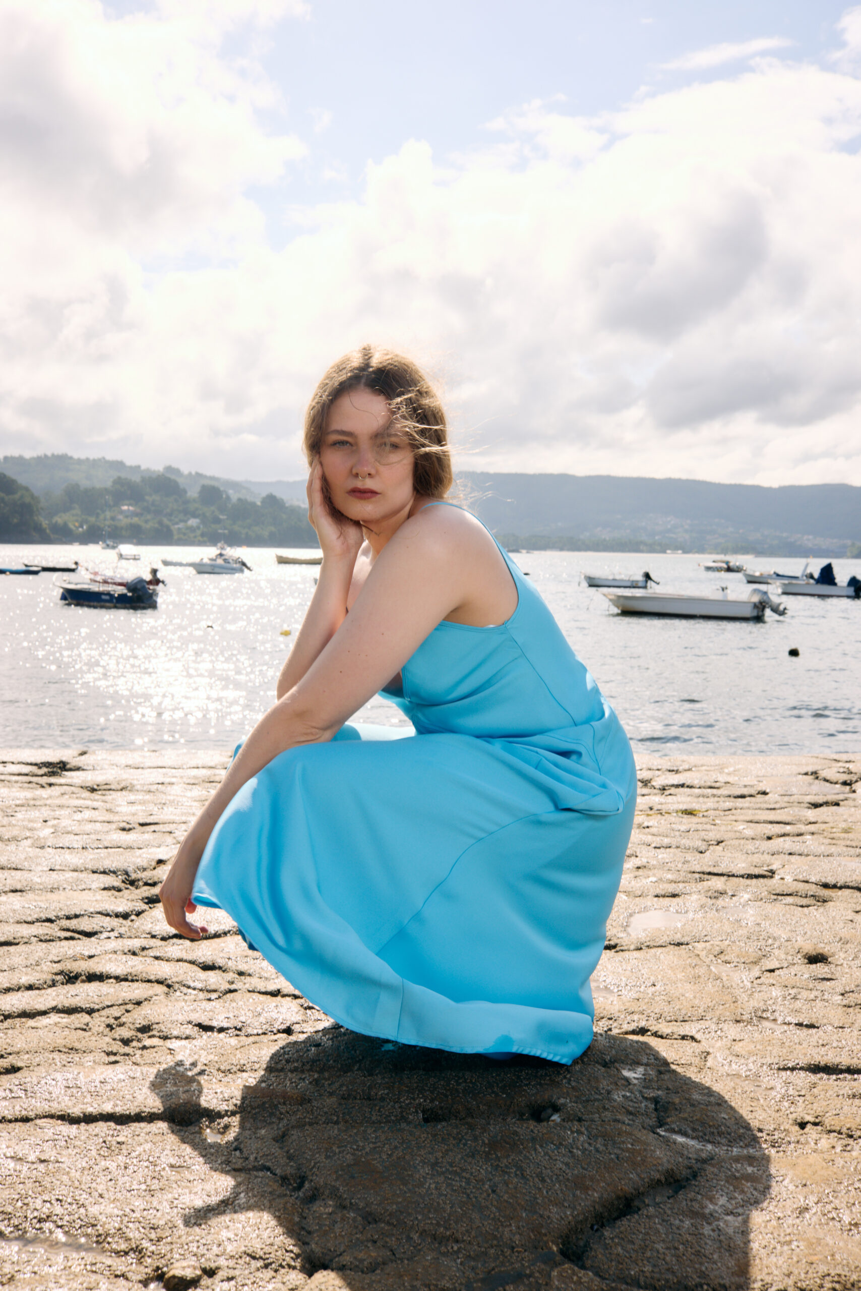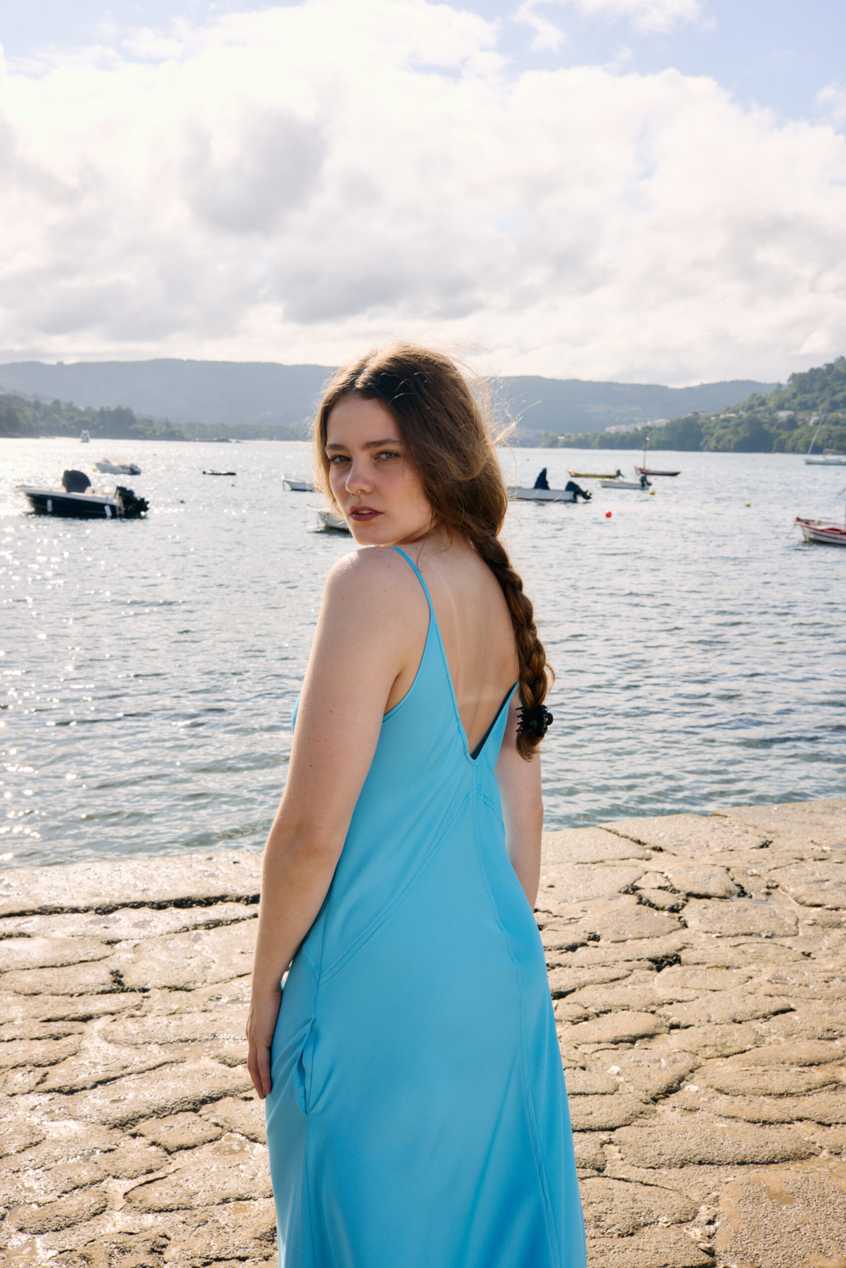 Vestido azul midi.