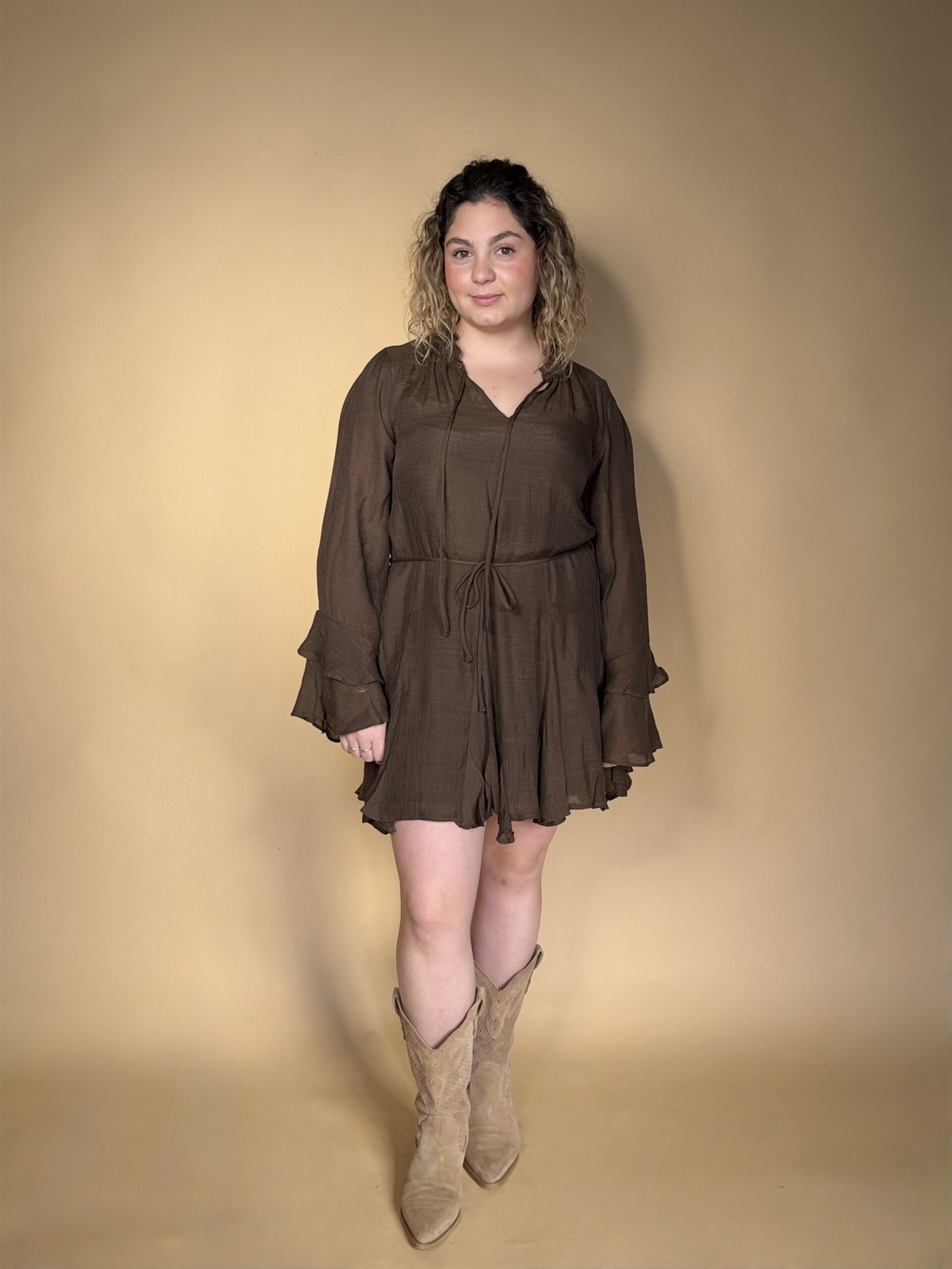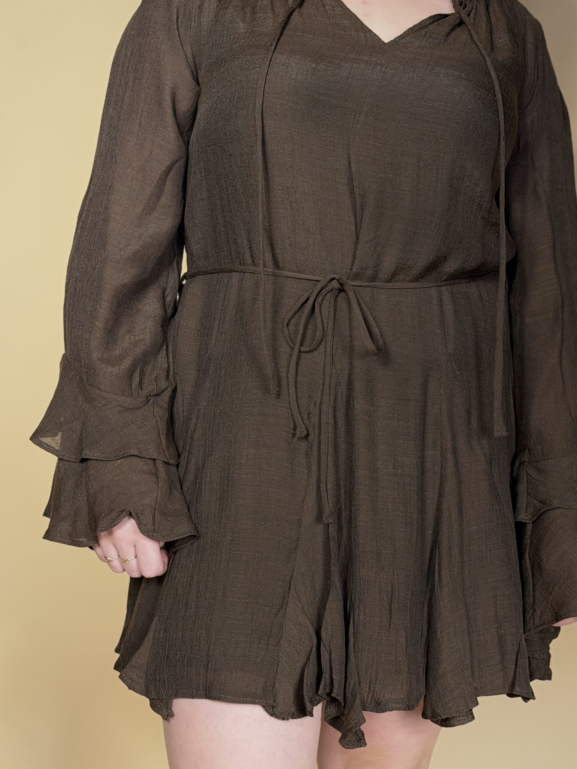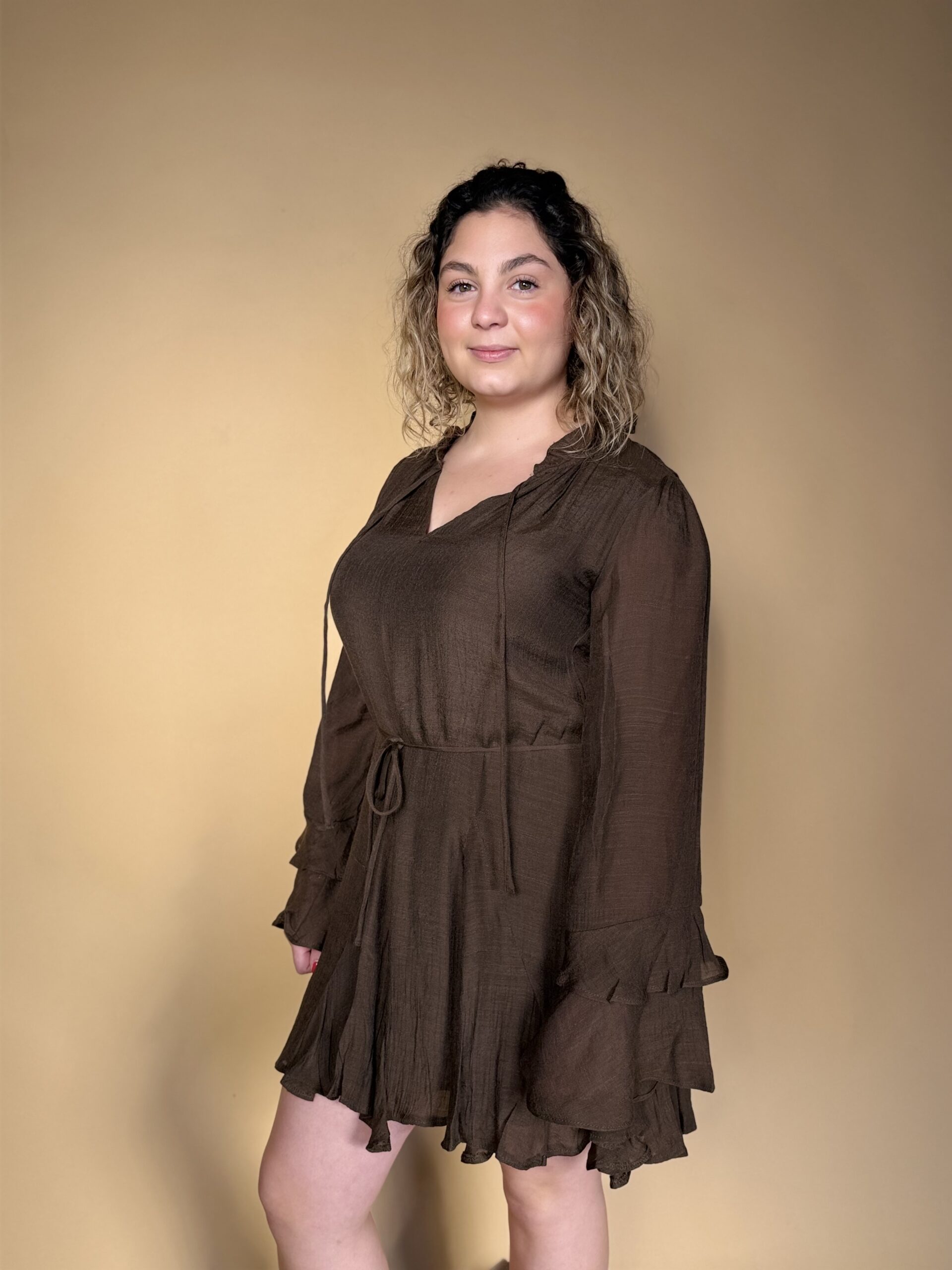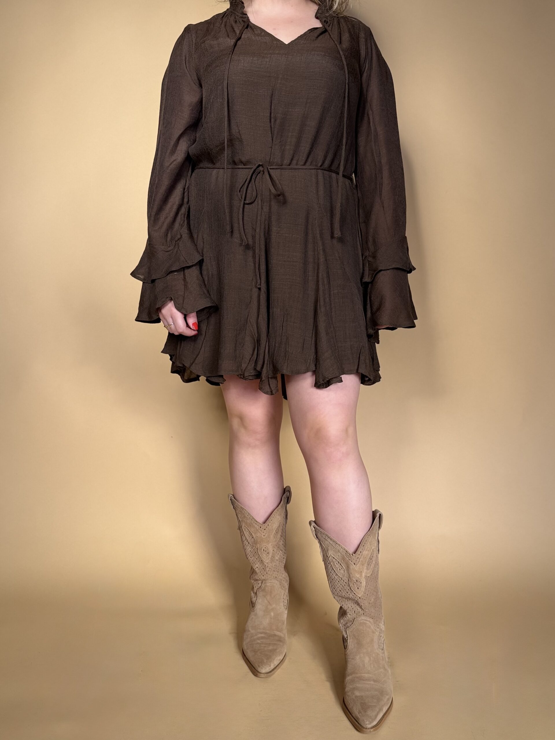 Vestido estilo boho-romántico en color marrón chocolate.