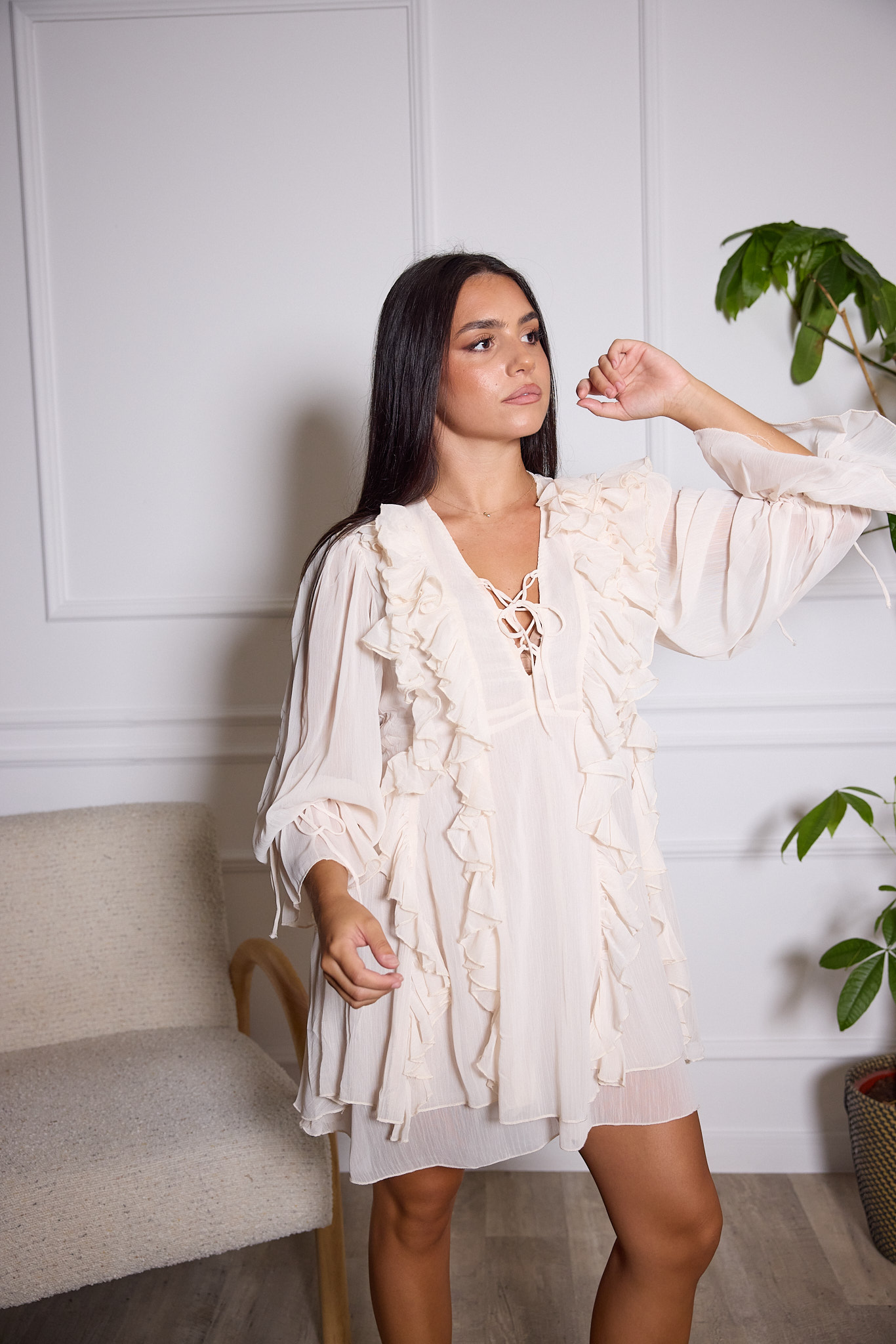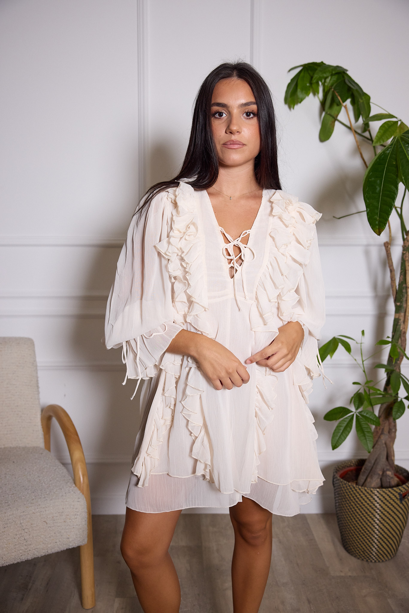 Su diseño ligero y sus numerosos detalles lo hacen perfecto para eventos especiales o para un outfit chic.